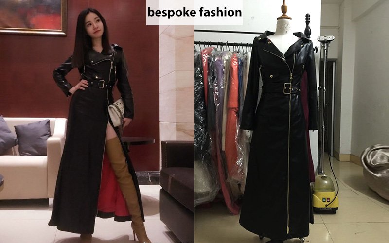 The piece combines biker-jacket toughness (leather texture, zippers, hardware) with elegant trench-coat heritage (length, belt, tailored fit), resulting in a hybrid garment that feels powerful, feminine, and utterly unique. Ideal for evening events, fashion-forward outings, or as a dramatic layering piece over evening gowns or slim trousers. Every stitch, seam, and proportion was hand-adjusted to her exact measurements and posture — ensuring flawless drape, comfort, and confidence from every angle.True bespoke means no compromises: we source the finest leather, hand-cut patterns, and construct layer by layer for a garment that becomes more beautiful with time and wear. This is not off-the-rack — it’s art you wear.