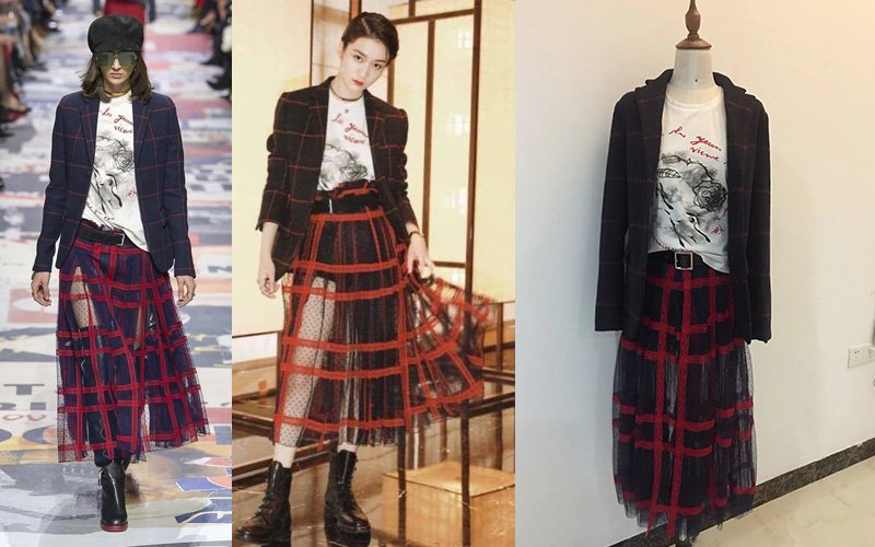 Through multiple fittings we refined every detail: t-shirt length and neckline fit, skirt waist placement, tulle volume, plaid overlay alignment, belt width, and overall proportion to perfectly match her body and desired silhouette. The result is a versatile two-piece set that can be styled with different blazers (as shown in the runway and client photos) or worn more casually. It’s ideal for fashion-forward events, editorial shoots, concerts, or any occasion where you want to stand out with confident, artistic elegance.True bespoke means this ensemble is one-of-a-kind — we selected and printed the graphic ourselves, hand-cut every tulle layer, and constructed it stitch by stitch so it fits and moves exactly as intended for her alone.